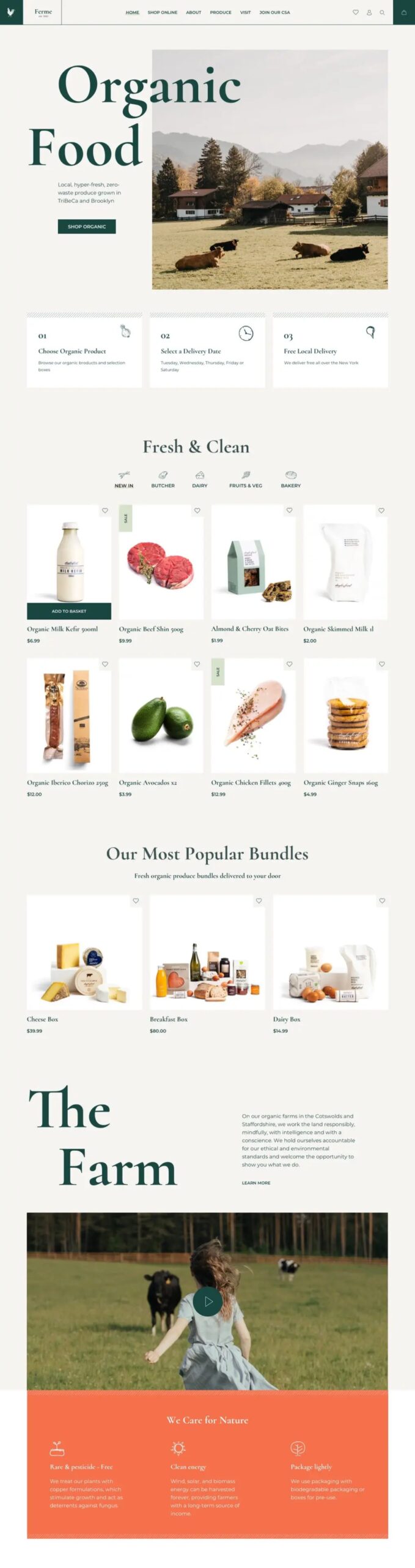 Ferme is a clean, modern eCommerce WordPress theme with all the necessary features for Farms, Food Stores, Grocery Markets or any type of Shop or Business website in the agricultural sector.