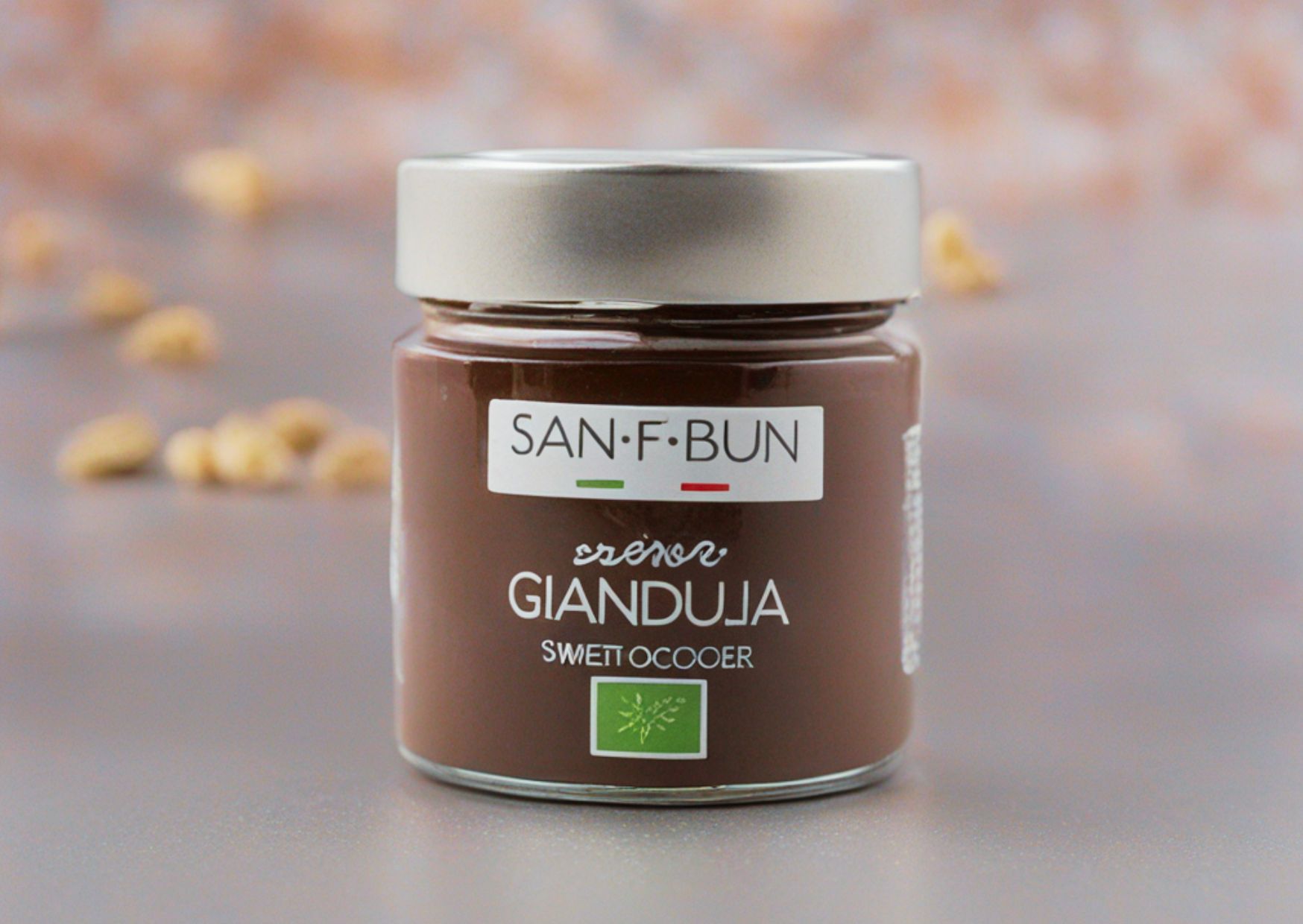 Crema Gianduja San e Bun – organiczny włoski krem czekoladowo-orzechowy z 60% orzechów laskowych Piemonte I.G.P. oraz kakao i cukrem trzcinowym. Naturalny, bez oleju palmowego, stworzony z najwyższej jakości składników z Piemontu.