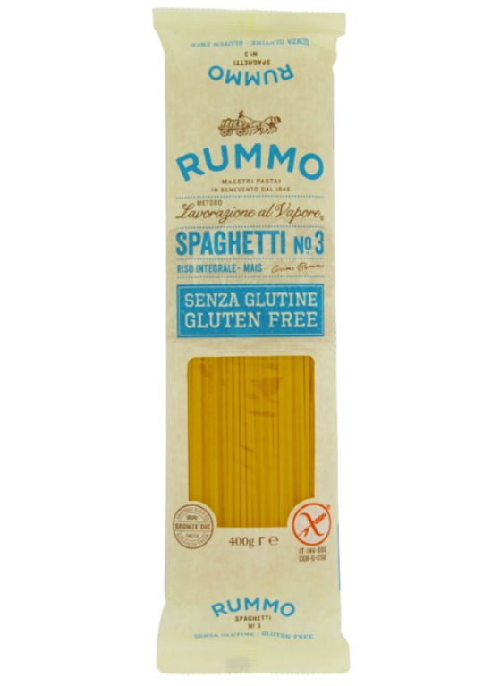 Bezglutenowe spaghetti Rummo No.3 – klasyczny włoski makaron z ryżu i kukurydzy, idealny do bolognese, carbonary i aglio e olio. Doskonały smak bez glutenu.