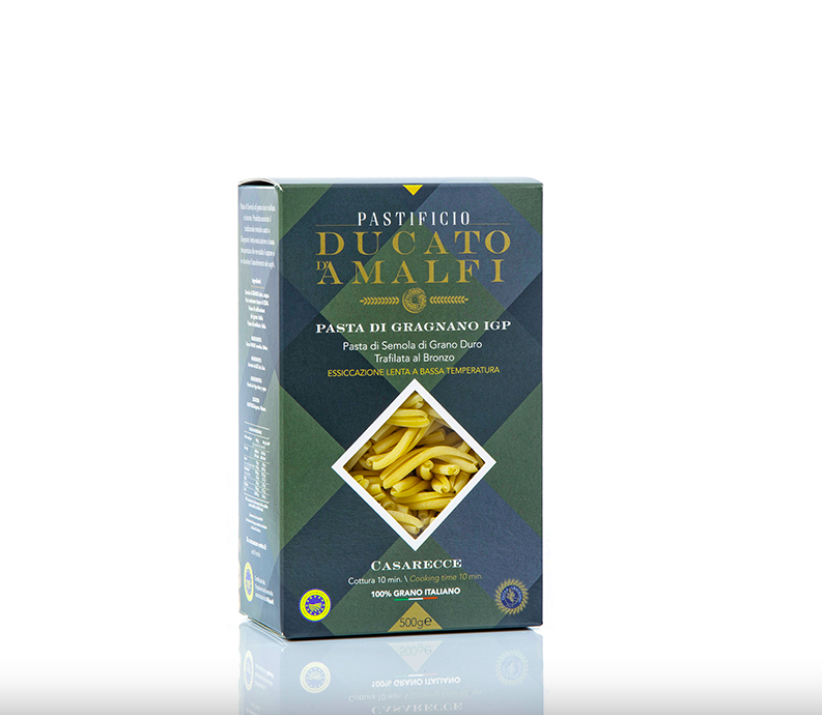 Makaron Casarecce z Gragnano IGP formowany jest w brązowych matrycach. Powstaje z wysokiej jakości semoliny z pszenicy durum oraz czystej wody z gór Monti Lattari.