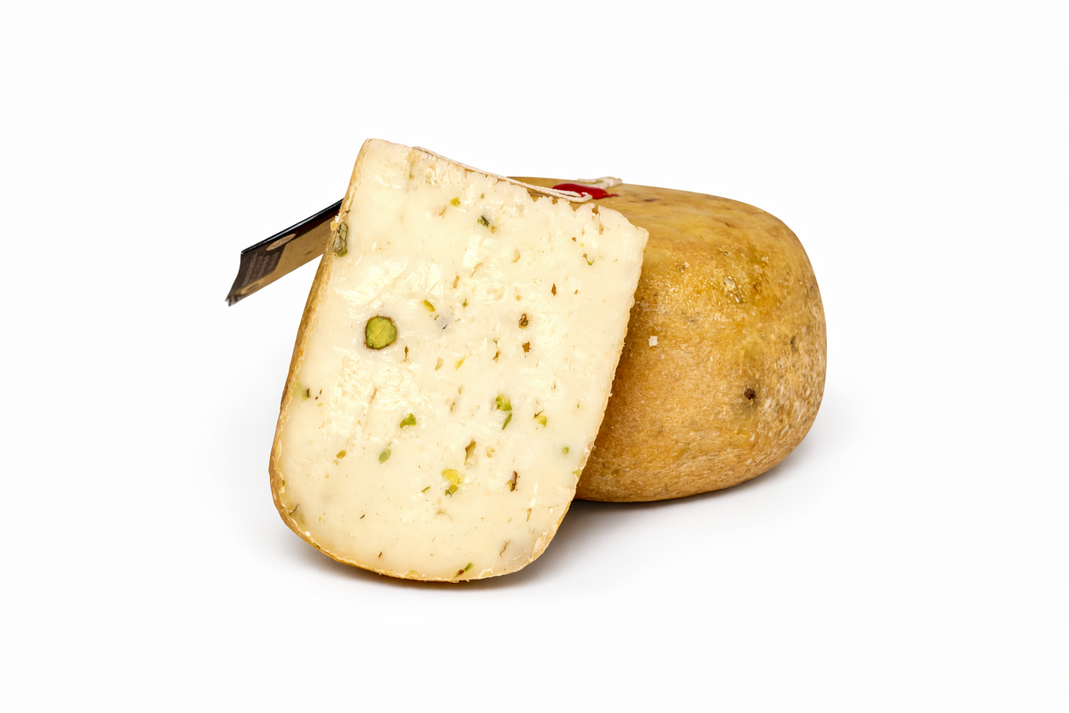 Pecorino z pistacjami (Pecorino Stagionato con Pistacchio) to wykwintny ser owczy z Sycylii. Wyróżnia się zwartą konsystencją i intensywnym, pikantnym smakiem, który przełamany jest słodyczą chrupiących pistacji (ok. 5%). Ser dojrzewający, produkowany tradycyjnymi metodami. Doskonały na deskę serów, do risotto, makaronów oraz sałatek. Prawdziwy smak włoskiego rzemiosła.